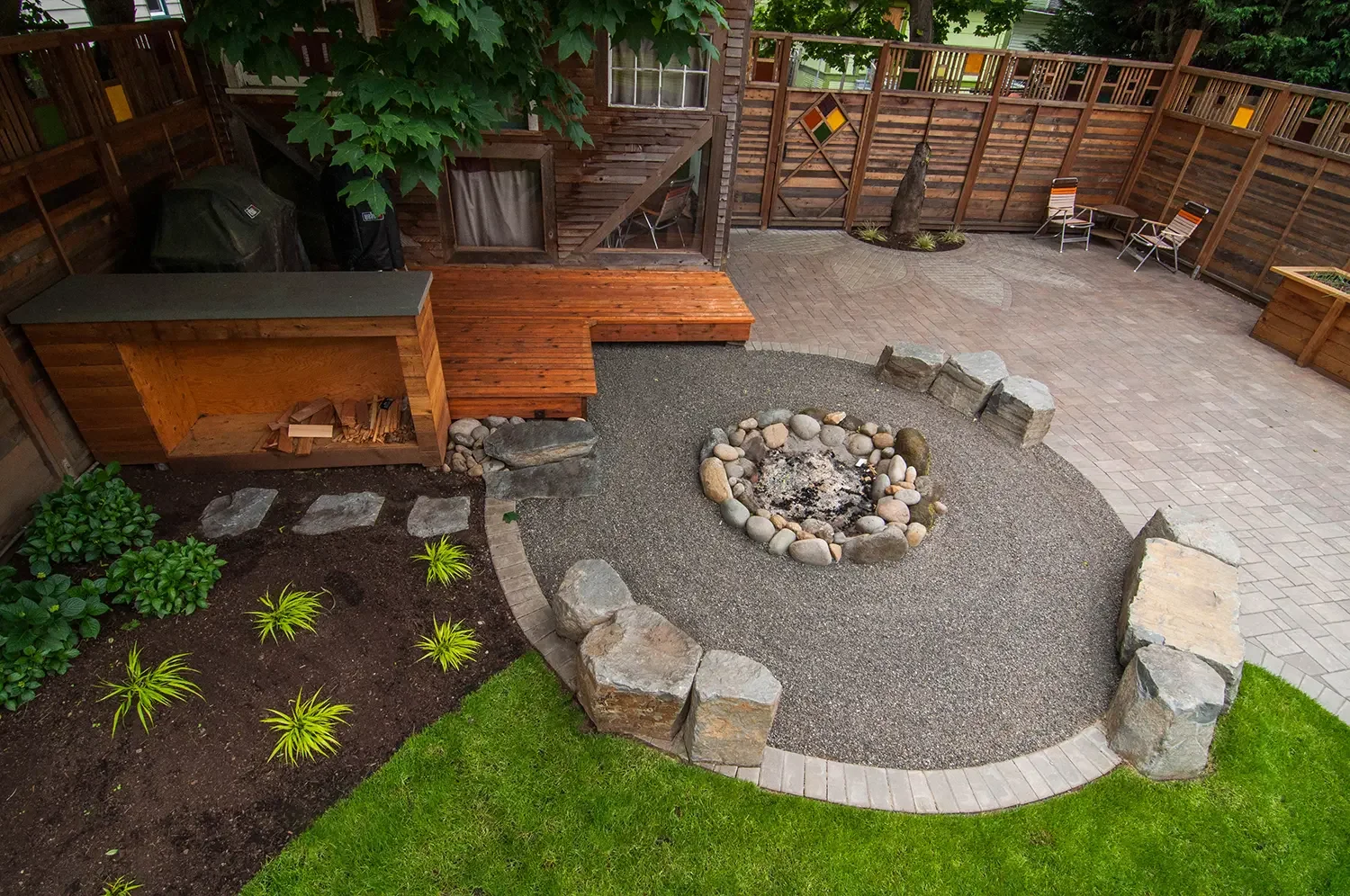 Imagine strolling along a stone pathway that leads you to your garden, or gathering with loved ones around a crackling fire pit on a cool evening. Our patios, walkways, and hardscapes are crafted with expert masonry using high quality stone, gravel, pavers, boulders or poured concrete, transforming a yard into a place to make memories outdoors.